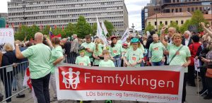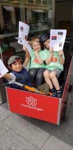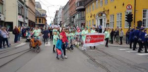 Alle som fikk sammen med Framfylkingen fikk sin egen fargeglade t-skjorte med logoen vår og «Oslo vår Miljøby» skrevet på.