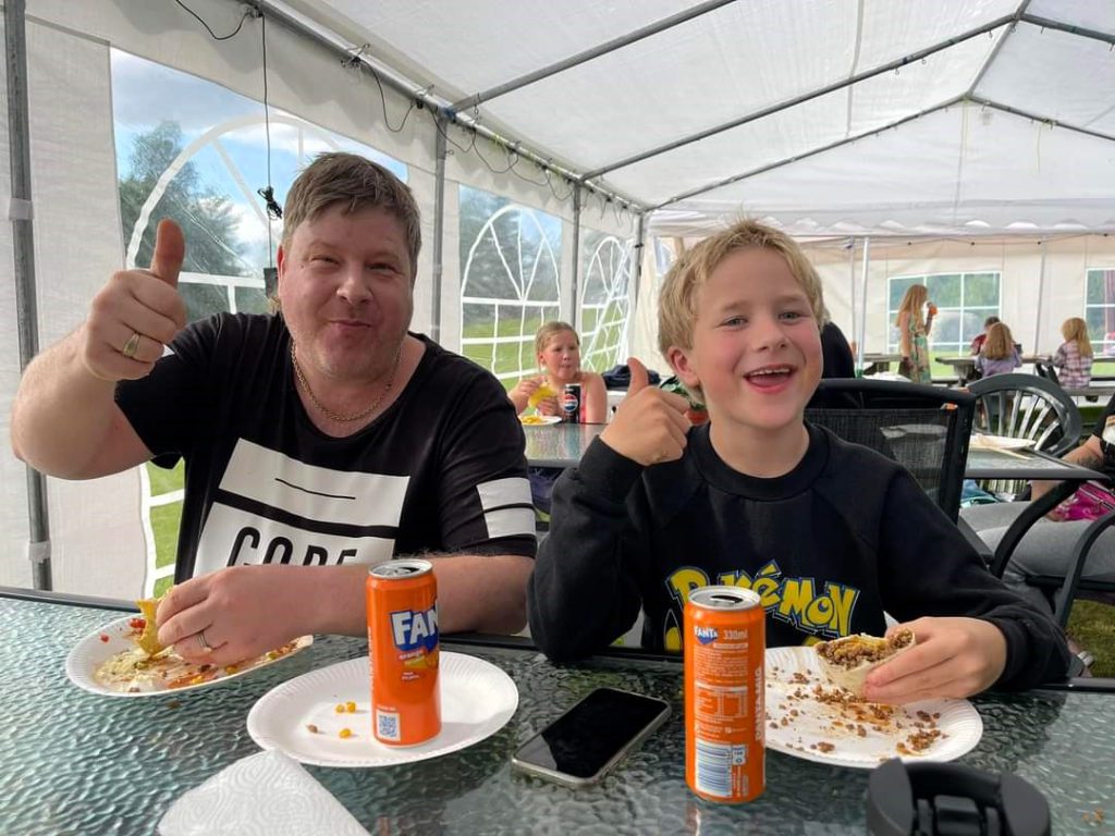 På leir er det mye god mat. Pølser grillet over bål og på grill blir aldri feil. Siste kvelden var det Taco-fest, det er alltid like populært.