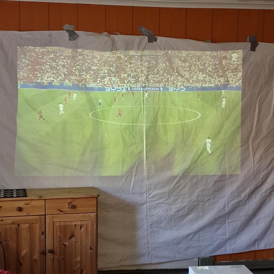 På kvelden var det kvartfinale i fotball EM, mellom Spania og Frankrike. Noen fotballinteresserte ble ekstra glade for at de fikk se den på lerret.