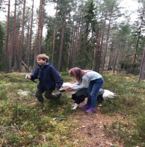 Gansdalen framlag på lørdagsutflukt i skogen. Erik, Tonje, Ingrid, Linda og Kasper