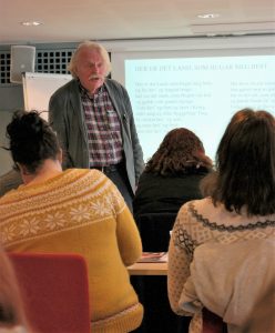 Hovedinnleder og den alle gledet seg ekstra til å høre var Jon-Roar Bjørkvold, professor i musikkvitenskap og forfatter av mange bøker. Mange synes nok det kunne på papiret se litt tørt og kjedelig ut, men for et festfyrverkeri av en foreleser han viste seg å være! Hele rommet satt oppmerksomt og lyttet til alt han delte av kunnskapen om musikk som språk, formidler og kontaktskaper.