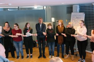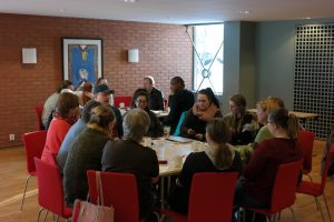 Etter en lang og god lunsj startet vi opp med mer organisasjonsarbeid, nå tok vi for oss hvordan vi kan være en trygg organisasjon, hva som kjennetegner det og hvordan det kan gjennomføres i alle ledd. Oppgaven løste seg ved å jobbe i det som kalles kafedialog, grupper som gikk rundt til de forskjellige oppgavene og bidro på alle bordene, dette skapte mye diskusjon og var en fruktbar måte å jobbe med oppgaven.