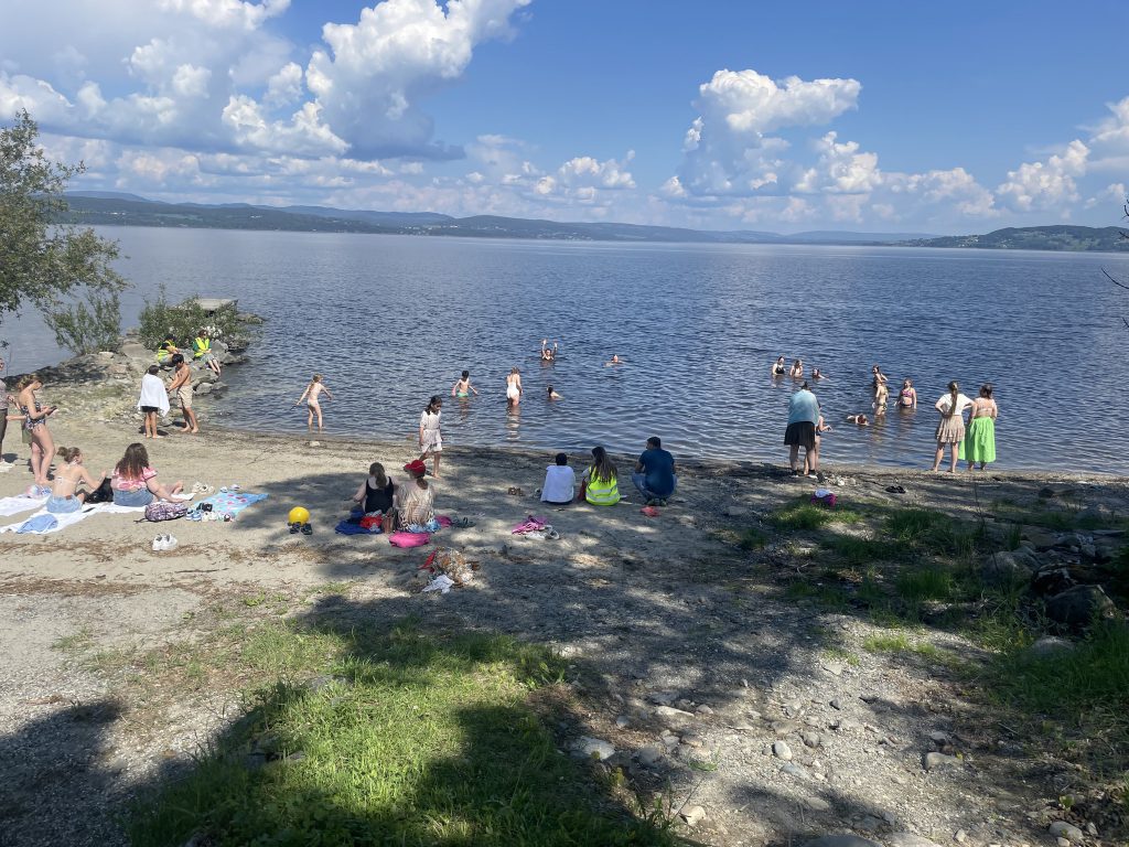 Gjennom en tettpakket landsmøtehelg for barna, er det satt av mye tid til lek og pauser også. Det var høyt aktivitetsnivå gjennom helga, og heldigvis ble det foreslått og vedtatt en lang badepause midt på dagen lørdag. Det var varmt og lummert vær, så det gjorde skikkelig godt, sørlig for de som hælet ut i den ennå litt kalde Tyrifjorden.