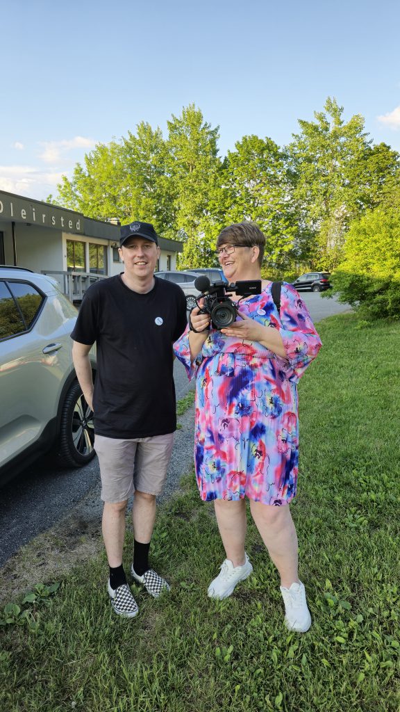 Danny hadde med seg et filmcrew, her med Monica.