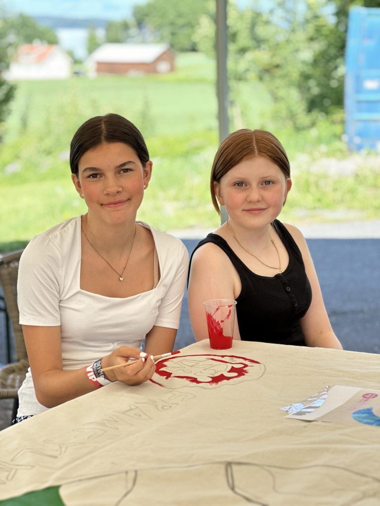 Maria og Sara på bannerverkstedet vårt Foto: T.Tovik