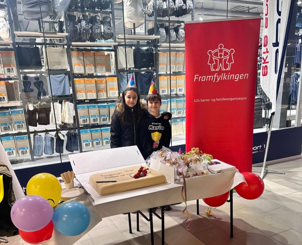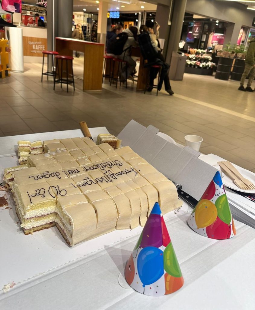 I Elverum sto framlaget på stand på Amfi-senteret med ei gigantisk kake. Det var mange som fikk med seg informasjon om framlaget og noe godt å bite i når de var ute og handlet den dagen.