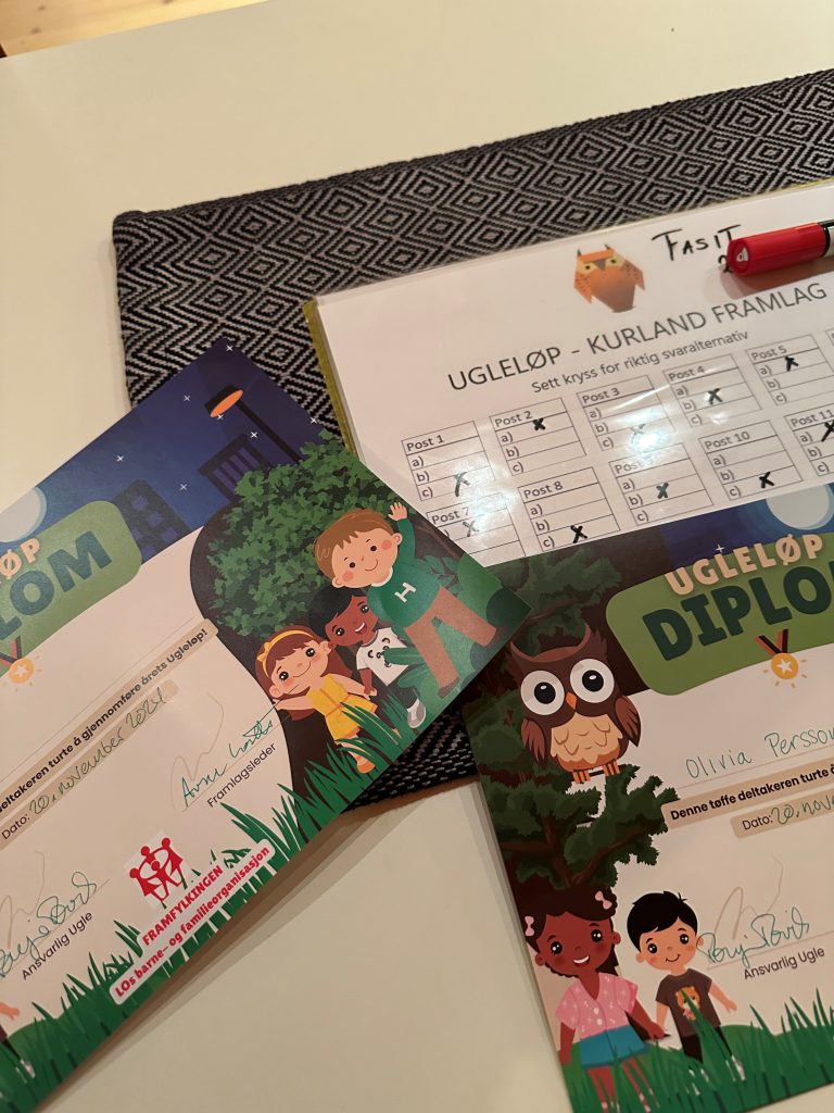Kurland framlag hadde invitert medlemmer til ugleløp og samling ved frambrakka. Mange var med, og det ble grillet pølser og poppet popcorn over bålpanna. Mange glade barn fikk diplom og premie for vel gjennomført ugleløp.